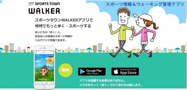 「スポーツタウンWALKER」は、住民のスポーツ実施率向上、健康維持を目的とした、自治体スポーツ情報ポータル+日常ウォーク管理アプリです。散歩やお掃除など日常のちょっとした「歩く」であなたのキャラクターが成長したり、抽選に応募できるポイントが手に入ったり、ランキングで家族や地域の仲間と競い合ったり。さらに、地域のスポーツイベントや施設などの詳細情報が入手でき、スポーツイベントについては申込手続きまで対応しています。